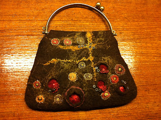 Og nu er det blevet til denne taske. Jeg har leget med silkefibre, broderi m.m.: